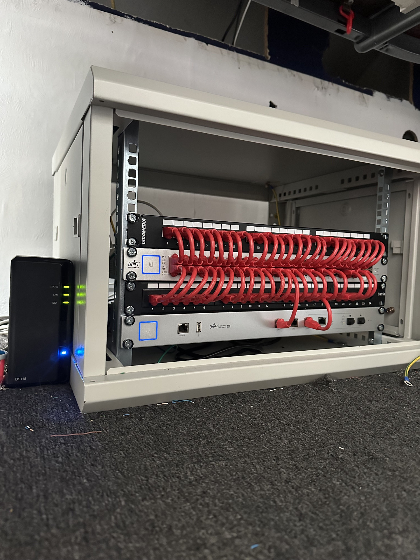 For the hardware, I used a USG-PRO-4 as the gateway, an Unifi 48-port switch, and Unifi Access Points to provide seamless connectivity throughout my home. My Synology DS118 served as the NAS, which I integrated into the setup for centralized file storage and as a VPN server.